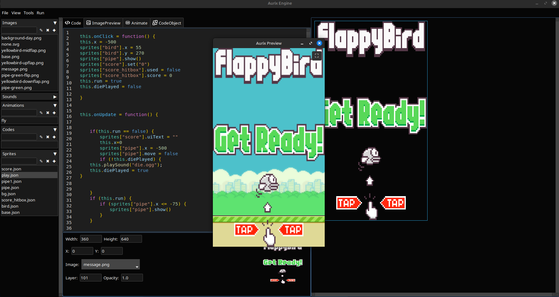 Aurix Engine is a lightweight 2D game engine designed for creators who want full freedom over their projects. It removes the clutter, keeps things simple, and lets you focus on what really matters – bringing your game ideas to life.
